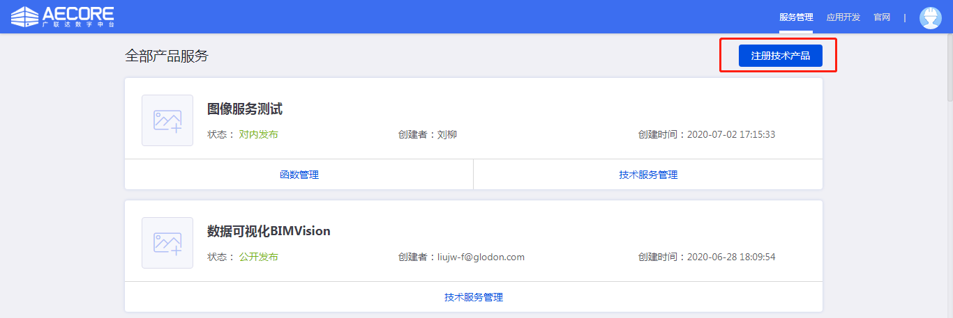 登录AECORE,导航栏选择并进入服务管理,填写服务基本信息。