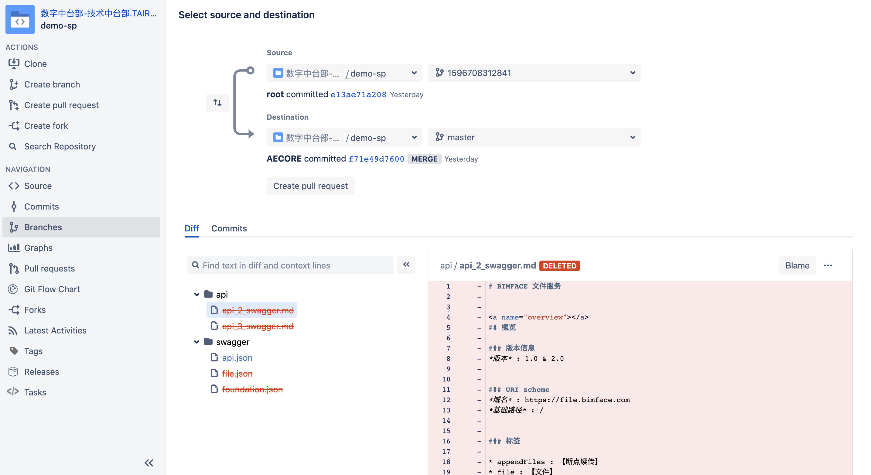 二、swagger导入后会自动生成md文件,并且会在git仓库创建分支保存此文档,此时如果需要发布,只需要提交PR,merge到master主干,即完成发布。