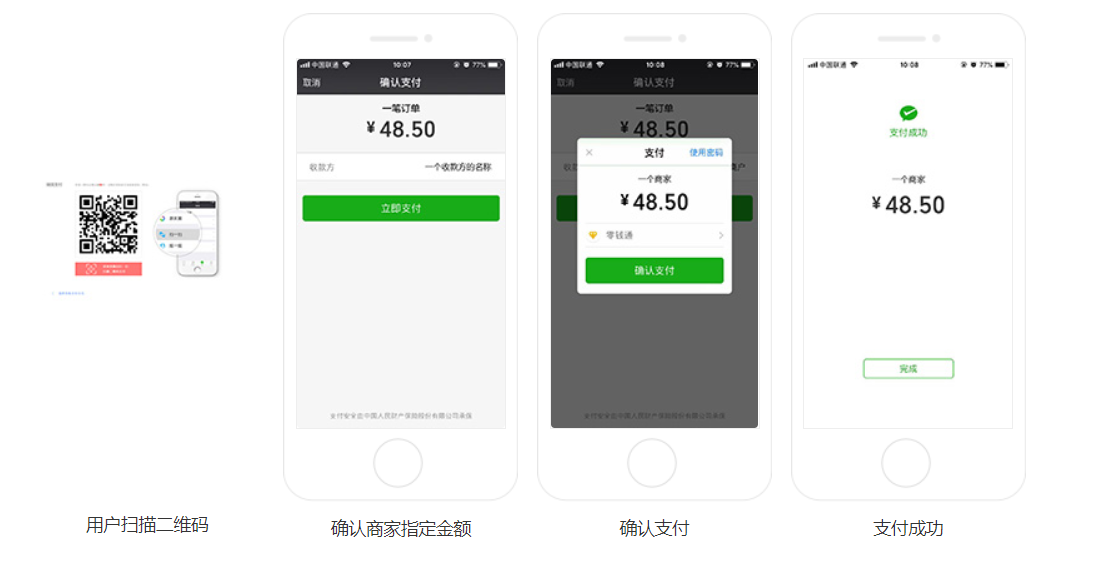 指用户在商家PC网站消费,选择微信支付,商户系统按微信支付协议生成支付二维码,用户再用微信“扫一扫”完成支付的模式。交易资金直接打入商家微信账户,实时到账。
