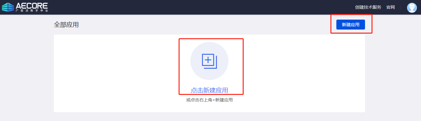 登录AECORE,并创建应用,创建应用后即可获取appkey、appsecret,这是调用服务的秘钥请妥善管理。