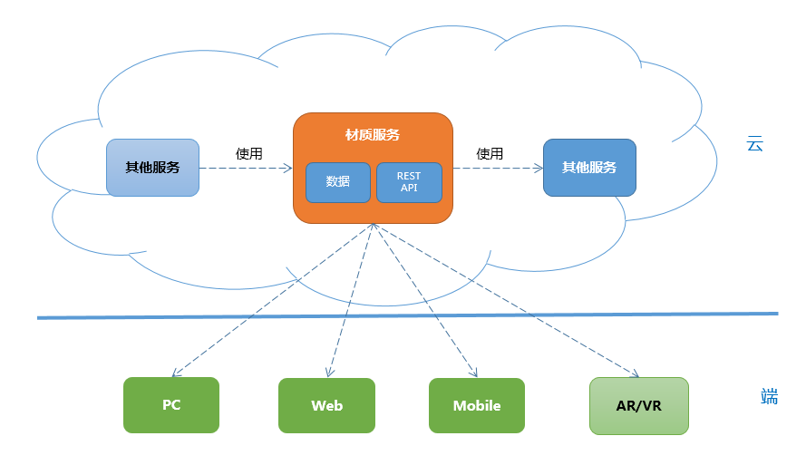 - 云材质库基于云服务架构,使得集成材质库的产品无需在终端存放大量材质数据,保持了终端系统的轻量化。