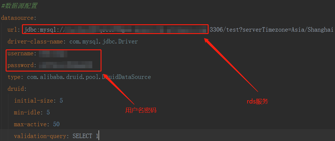 将示例中的数据源配置修改为您的数据源