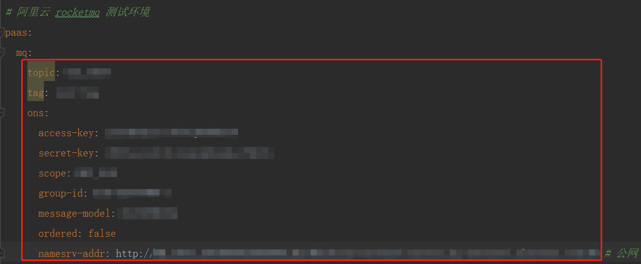 修改阿里云rocketmq的配置项为您自己在阿里云的配置。