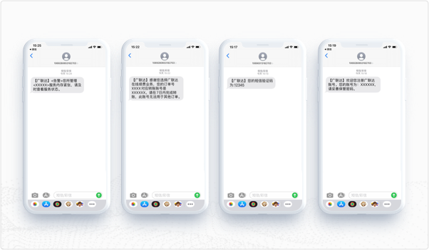 支持短信、语音电话、邮件消息,可批量、自定义模板发送消息,无拦截,无黑名单,通道优,低延迟,保障高到达率