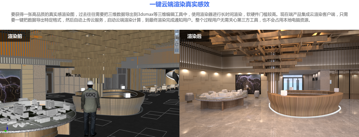 基于云端强大算力的离线渲染,快速输出照片级真实感渲染图。